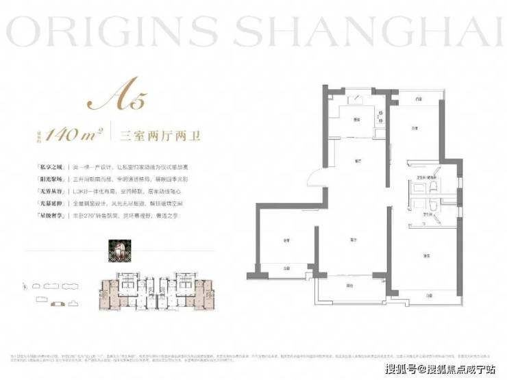 建面约140m²3房2厅2卫:格局上做到 三开间朝南+南北通透 ,让业主起居之间沐浴更多阳光。