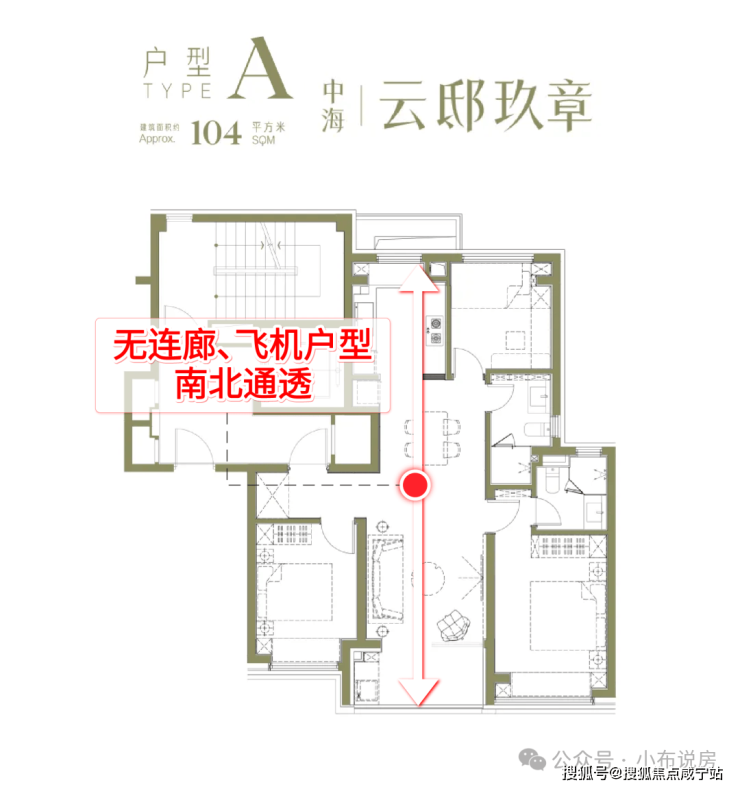 飞机户型的优势体现在3个方面:首先是通风采光效果俱佳,让业主起居之间沐浴更多阳光;其次公区的视野更开阔,贯通性更好;最后主次卧分列2边,对于多代人居住的私密性有很大提升!