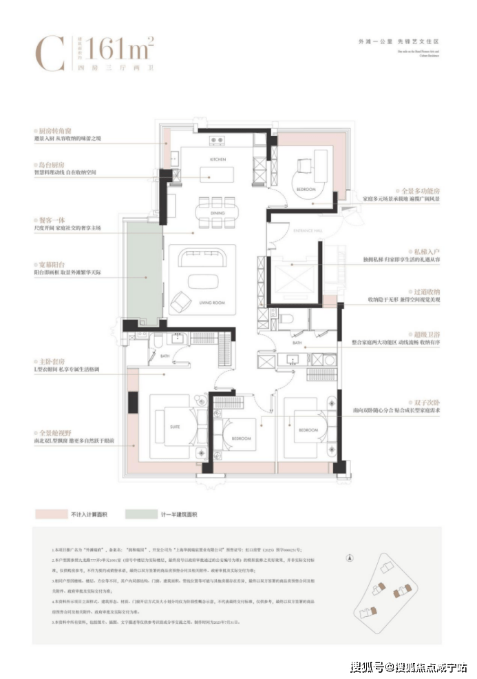 而建面约161㎡的奢享四房,则是对改善需求的深刻洞察。其设计更是颠覆性的:全屋四个转角窗构建外滩天际环幕视野,三卧朝南且近乎等面宽的“真四房”设计,实现了家庭成员间的景观平权与舒适平权。酒店式四分离次卫与独立家政空间的设计,更是对生活细节的极致考量。