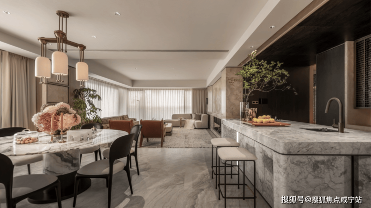 约240㎡客厅,成为家族迎来送往的“私人会所”。连通北向次卧形成近90㎡的LDKGT超级厅堂,无论是商务伙伴的远见卓识,还是家族挚友的午后闲谈,都在此从容承载。