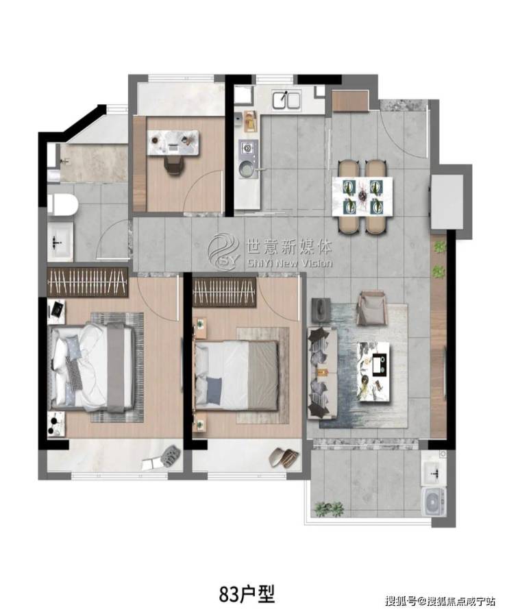 高层建面约83㎡3房2厅1卫