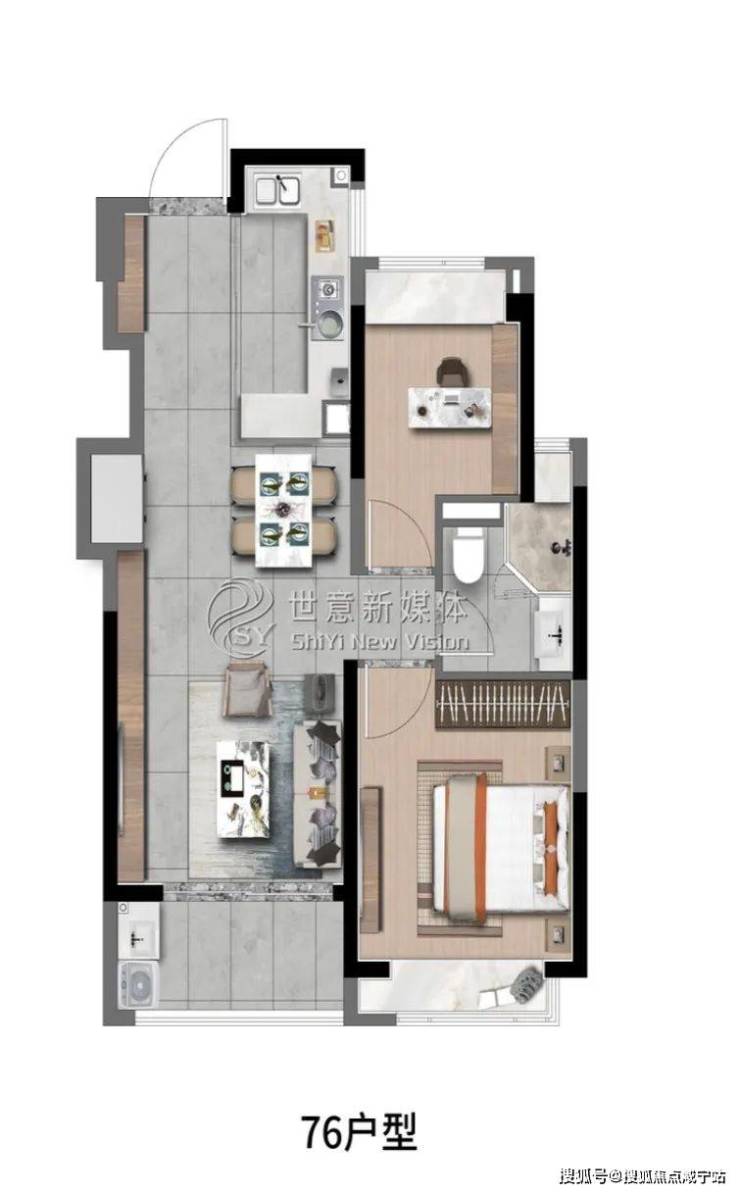 高层建面约76㎡2房2厅1卫