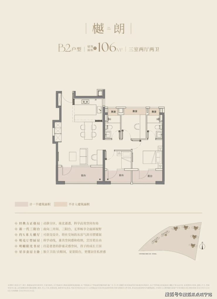 建筑面积约106㎡户型,更是以宽尺大横厅和270°的转角飘窗赚足了眼球,阳光与清风自由流淌,居住舒适度全面提升。