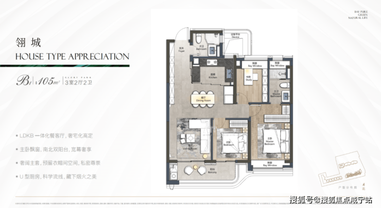 四开间朝南的设计+六飘窗(北次卧约270°转角飘窗)+宽面阳台,整个户型的采光通透度真的做到了完美。