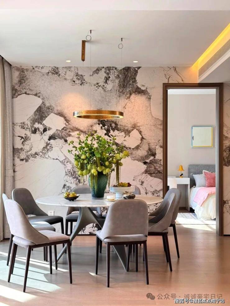 我带你回到客厅,嘉盈峰顶复客餐厅一体120㎡,天花做无主灯设计,线性灯带藏在意大利灰麻石吊顶里,色温2700K-5000K可调,开派对一秒切换夜店模式。地面是120×60cm大板银河灰石材,每块花纹对齐,损耗率高达38%,只为让你看不出拼缝。我按下墙面触控屏,嘉盈峰全屋Homekit智能系统启动,灯光、空调、音响、窗帘、泳池过滤一键联动,离家模式3分钟全屋断电,只留安防与冰箱,一年帮你省电费近两万。你问我物业多少钱?我摊手:嘉盈峰顶复业主享“黑金卡”待遇,物业费12.8元/㎡/月,但送全年免费机票接送、私人医生上门、米其林厨师家宴,折合下来倒贴你钱。