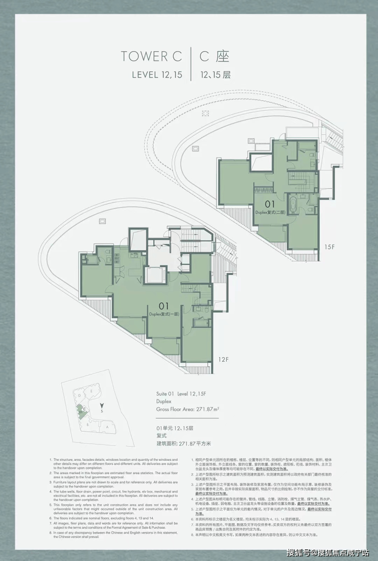 建筑面积:271.87平米双露台顶层复式(私享独立电梯厅)