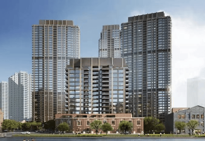 1#地块由四幢住宅组成,其中1幢住宅建筑高度能到165米,将超过浦西顶豪海泰北外滩和150米高的华侨城苏河湾双子塔。更是高于153米高的陆家嘴汤臣一品。其余2#和3#分别在142-145米左右,44-45层楼。4#则是16层高的住宅。