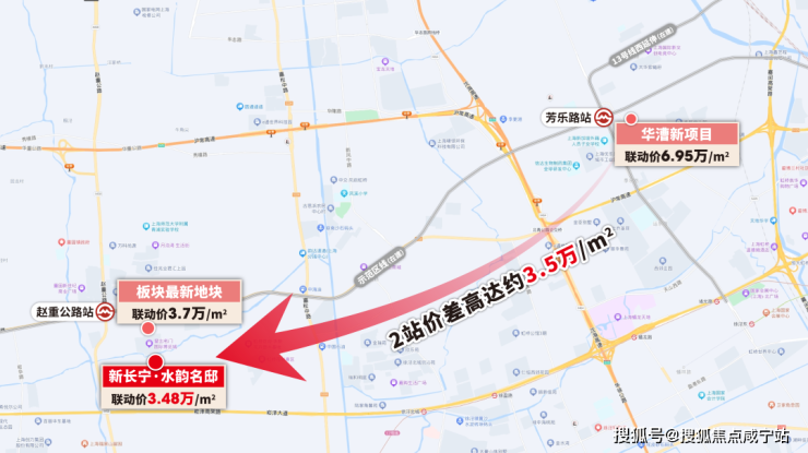 一方面,项目旁新地块联动价已涨到3.7万/㎡,足足上升约2000元/㎡;而沿着示范区线2站外的华漕已6.95万/㎡,1站外的华新4.75万/㎡,这样的差价在全市都极为少有。