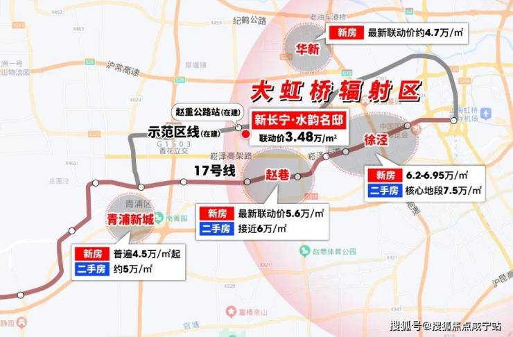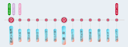 更重要的是根据近期《上海示范区线选线专项规划调整(草案公示)》,未来从距项目约1.2公里的【赵重公路站】出发乘坐示范区线,向东3站直抵虹桥枢纽,并可与2号线、10号线实现换乘。