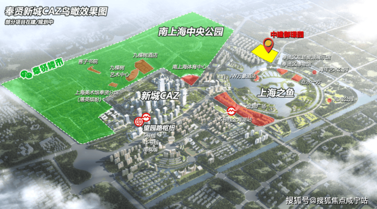 一、占位城市副中心,坐享一城资源 作为奉贤新城CAZ(中央活动区)的核心资产,中建御璟园占据08单元黄金区位,与上海之鱼仅一街之隔3。项目紧邻4.78平方公里城市绿肺,东临金汇港天然水系,西瞰上海之鱼全景湖景,形成双面环水的珍稀格局2。这里不仅是奉贤的生态名片,更是市级副中心规划的落点——15号线南延段(在建)、南枫线(市域铁路)与已开通的5号线形成三轨交汇5,