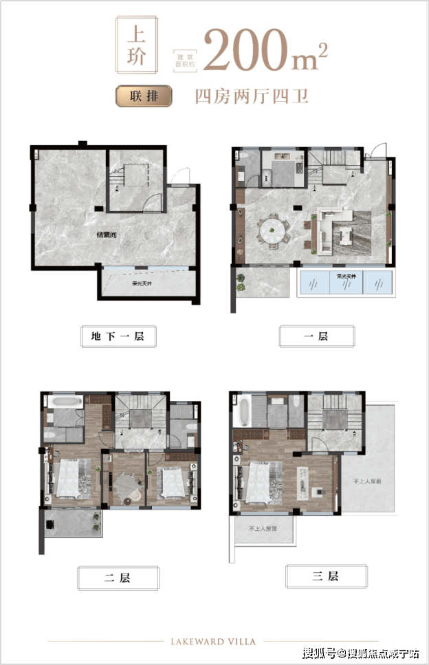 200-230㎡联排: 三面采光,私家庭院+屋顶花园,圈层身份标识3。
