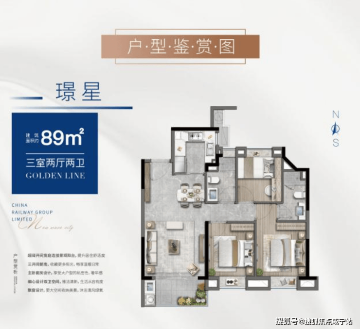 3、采光面,更多向南:同样还是以建面约89㎡为例,能做到三面宽朝南,采光效果远胜同类同面积段产品。