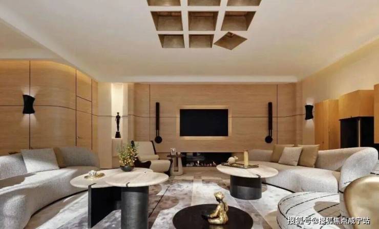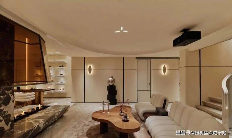 顺着弧形木质楼梯抵达地下空间,仿佛游走在一曲流动的乐章中。一切都共同呼应着水的特质,传递着低调隐逸情怀与圆融个性。