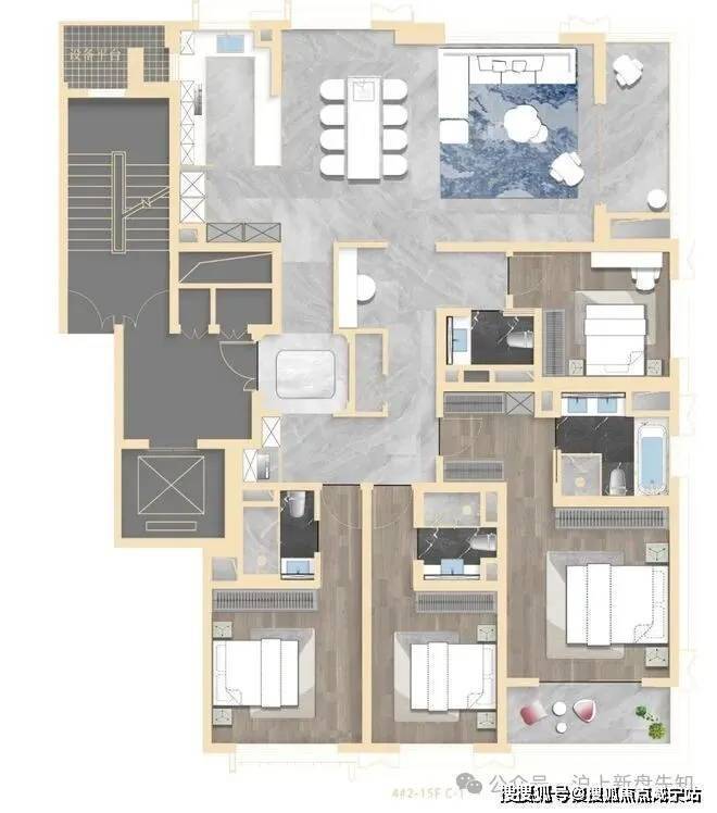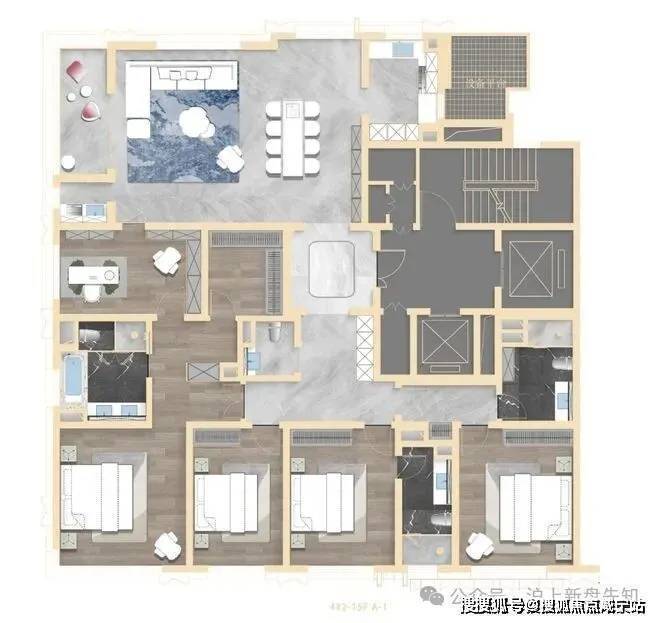 尤其主卧星级套房,配置独立衣帽间、书房,奢华主卫四分离,双台盆+淋浴区+大浴缸+智能马桶,私密性&奢适度无敌;
