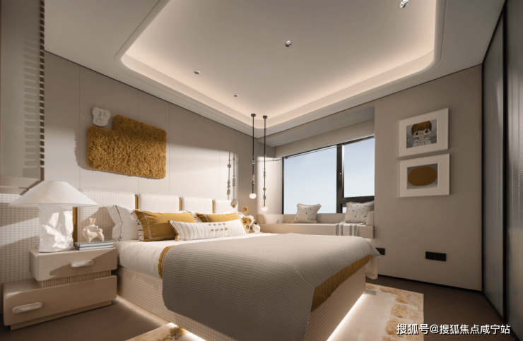 三间卧室更是将“大”落到实处,面宽近乎均等设计,没有谁的房间在采光、视野上被妥协,实现了家庭成员居住上的“平权”,孩子的房间能放下书桌与玩具柜。再加上大面宽阳台、室室飘窗,实用面积很可观!