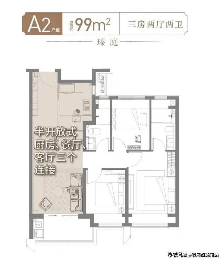 细节一:99㎡户型开放设计,核心区利用率MAX!
