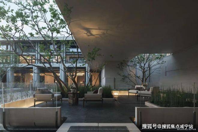 社区入口规划高逾四米的石材景墙,揉石成缎,还原风的褶皱。极致匠心