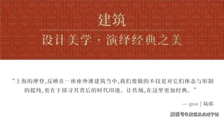 汲取外滩风貌建筑精髓——折衷主义风格,辅以现代化比例与线条勾勒,最终形成富有 ART DECO美学的建筑封面,令历久弥新的质感形成与万国建筑群的美妙对景。