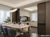 客厅面宽4.1m左右,层高3m, 悬浮式吊顶,客餐厅一体化,采光通风效果俱佳。主卧是套房配置,自带卫生间,保障私密性和舒适度。