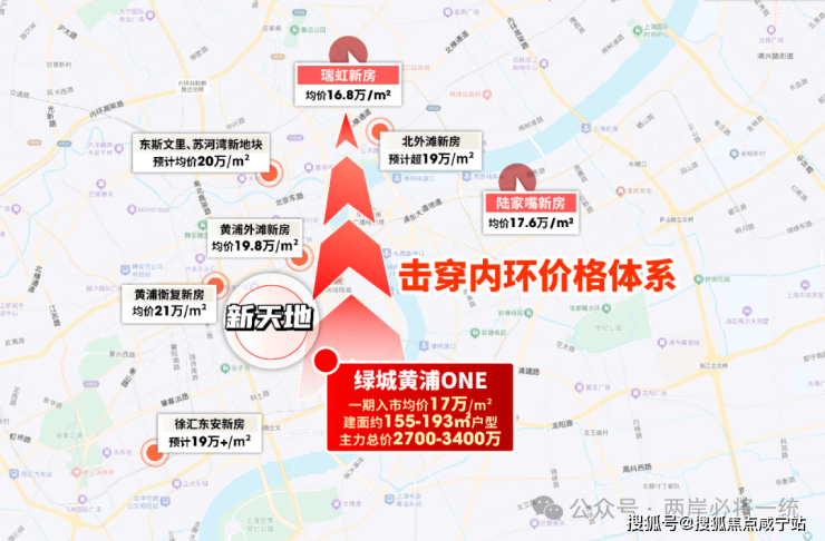 虹口在售新房单价已达16.8万/㎡,绿城地王预期更是19万+/㎡;