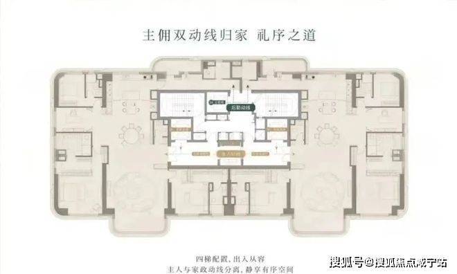在产品打造上,二期罕见的四梯配置,主佣动线分离,匹配高端客户的更便捷更高效的居住需求。延续一期独门独户专属电梯门厅,二期的尺度将更为阔绰。