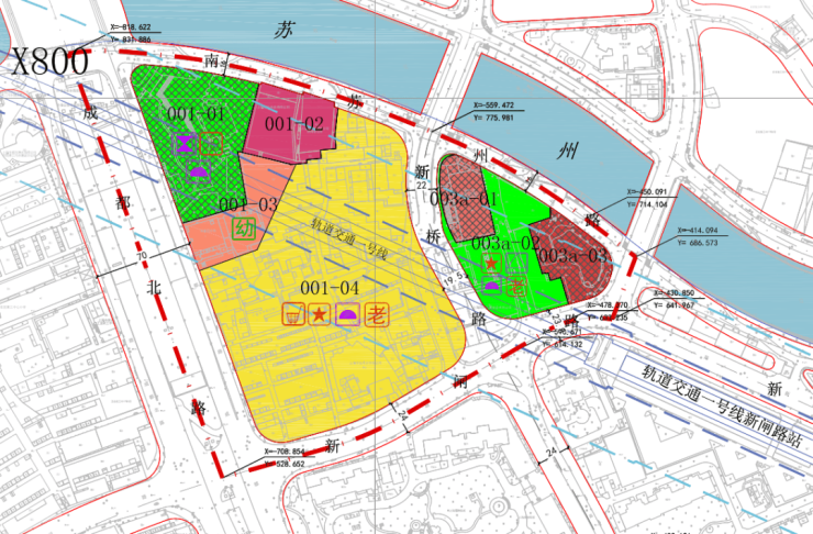 1号地块临苏州河,离1号线新闸路站也很近。1号地块以高层建筑为主,7号地块是低密建筑。