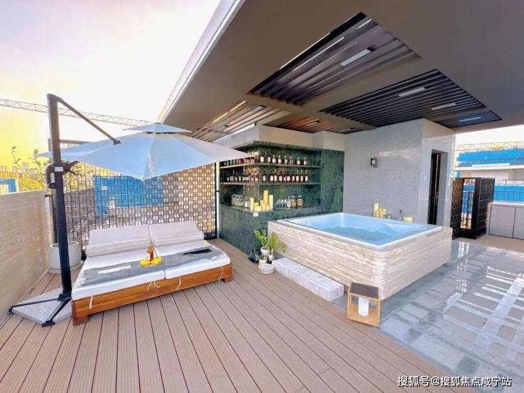 4层客餐厅通过L型露台连接,形成城市中难得的空中花园,特别是边套产品,顶楼露台面积可达约60㎡,无论是打造露天酒吧、儿童游乐区,还是布置观星露营场,皆不在话下。