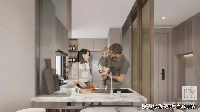 也就是说,厨房的玻璃移窗打开就可以直接送餐到餐桌,不仅更加便捷,也能增加厨房与客餐厅的交流互动,比如孩子回家在餐桌写作业或在客厅看电视时,妈妈也能一边在厨房忙一边和孩子聊天互动。