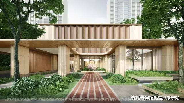 金地西郊悦章的“豪宅感”,从社区大门开始。作为社区的主出入口,南入口人车分流,并且贴心地立了一个和城市交融的交互空间——前场广场。