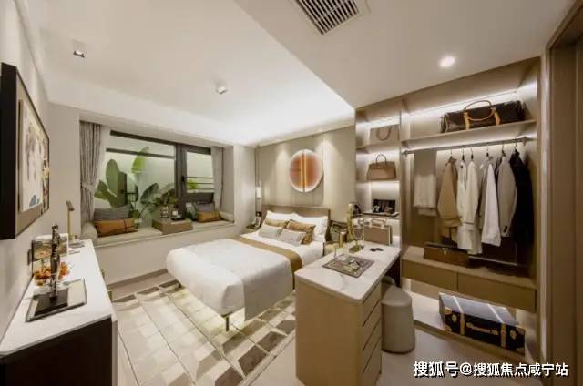南向主卧采用套房式设计,带有大飘窗,可以更好的享受阳光和欣赏小区美景;主卧内可设计L型衣帽间,方便男女主人摆放更多衣物;并且拥有独立的卫生及浴室,兼具生活的便利性和隐私性。