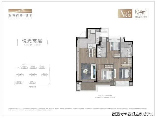 而说到提升“居住弹性空间”的主要要素,那必须是户型。金地西郊·悦章室内户型的设计细节,更加能够体现出金地对高品质舒适生活的理解,以热销的104㎡户型为例,三房两厅两卫的设计,布局考究功能全面,不仅实现南北通透,而且布局紧凑空间利用率高。