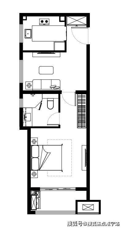 B2户型,建面约50㎡一房一厅一卫