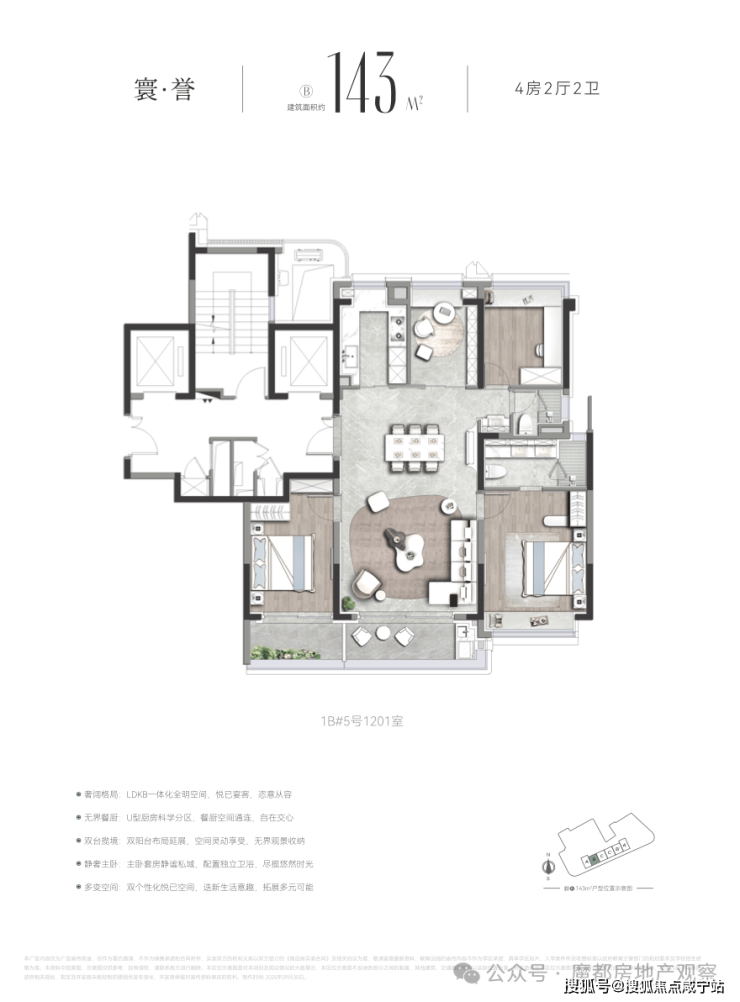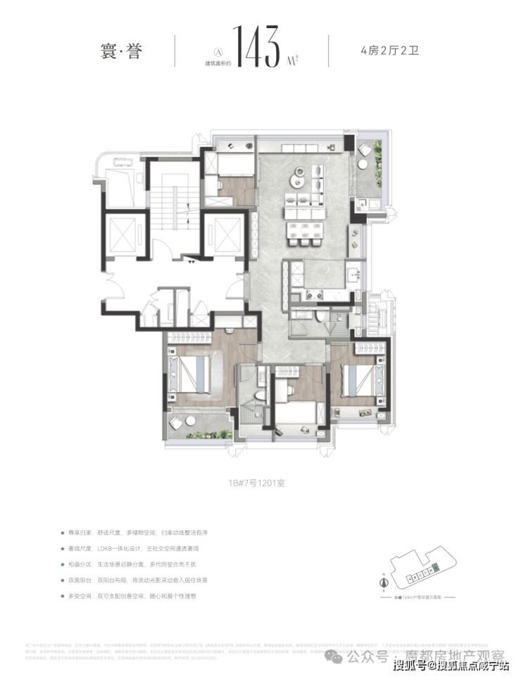 特别是首推的约143㎡4房户型,更是极具诚意,不仅有着超越市面上普通160㎡户型的居住尺度体验,同时,该面积段预计总价仅约1800万起,