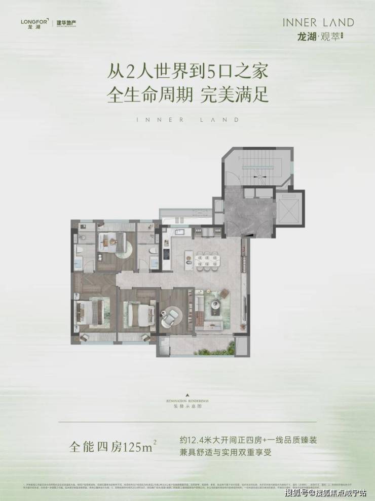 约12.4米大开间正四房,兼顾空间感与功能性,适配全生命周期家庭。