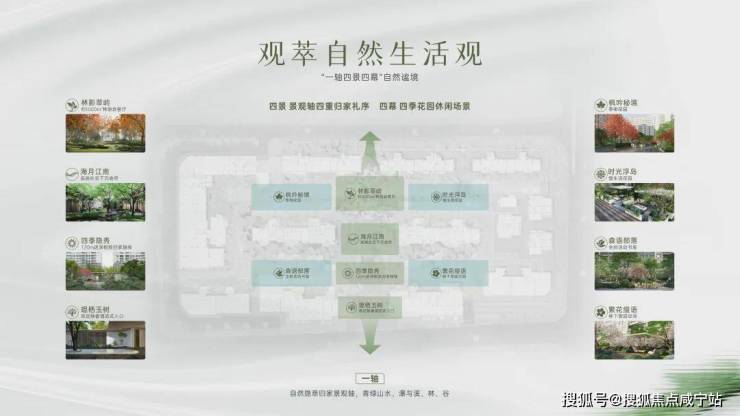 从高定酒店式入口进入,便是约120米进深的自然隐萃归家景观轴,串联“四重萃隐景观”、“四幕花园谧境”。