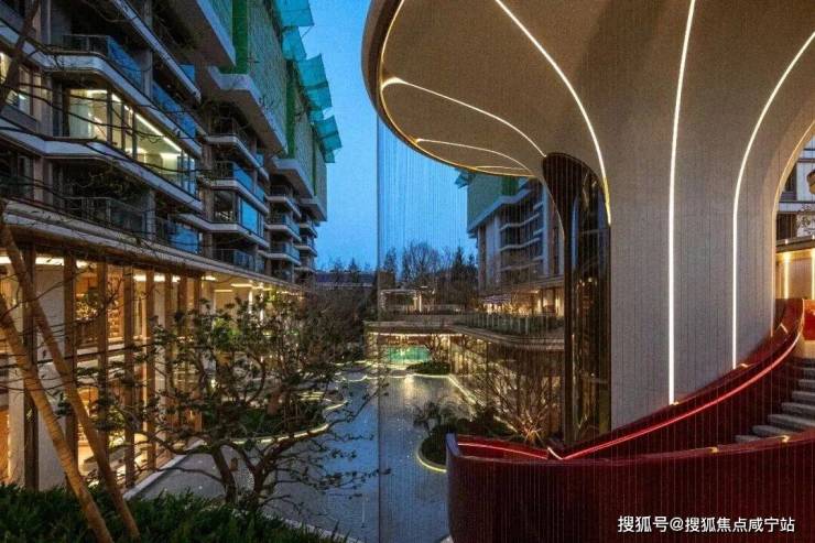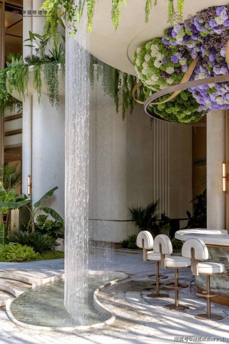 10米环抱式水幕环绕着一座酒红色的艺术旋梯潺潺流下,6米高的高空瀑布从会所泳池上方飞泻,最终汇入脚下1200㎡的镜面水景。这是2026年上海首个拥有水幕瀑布系统的社区,将新加坡皮克林酒店的同款度假感搬到了家楼下 。