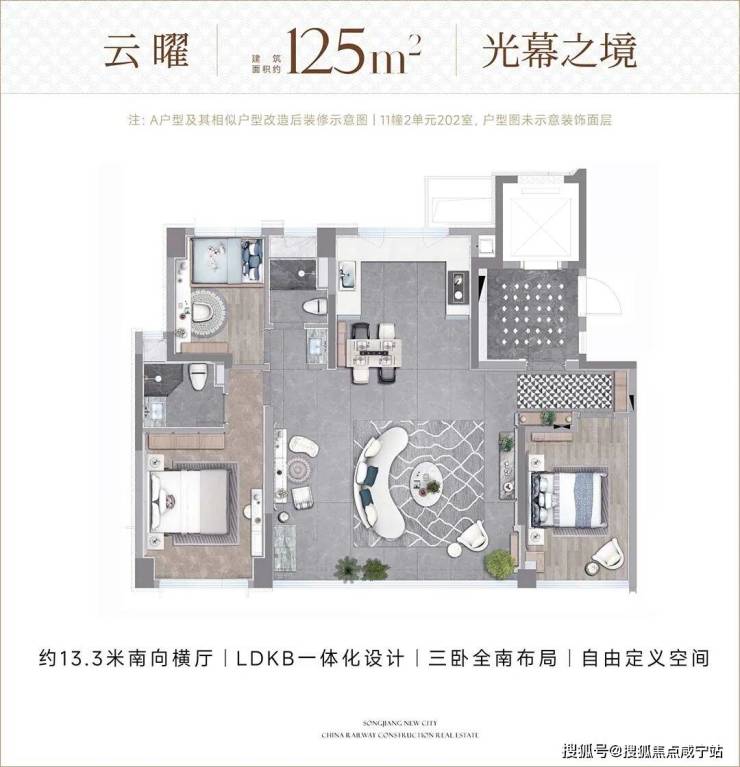 新政后松江板块首个四开间朝南、且不封阳台的三阳台户型,实际使用面积超过原来的约140㎡大户型,实现“面积不变、体验跃级”的居住突破,质价比满分!
