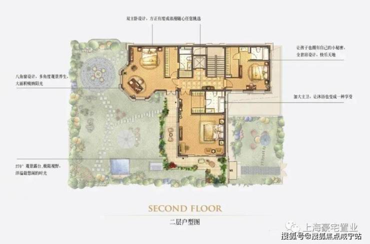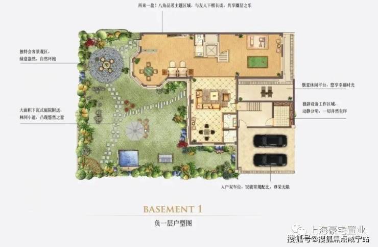 除此之外,每户都自带有2个下沉式私家花园及入户花园,其花园总面积更是达到了200平。