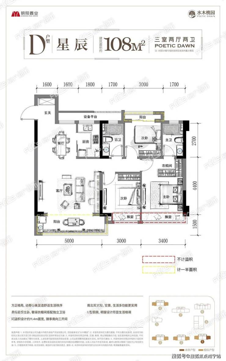 而最令人瞩目的,当属约108㎡的户型。这款户型虽然被称为“小户型”,但实际上却拥有“重磅改善”的居住体验。