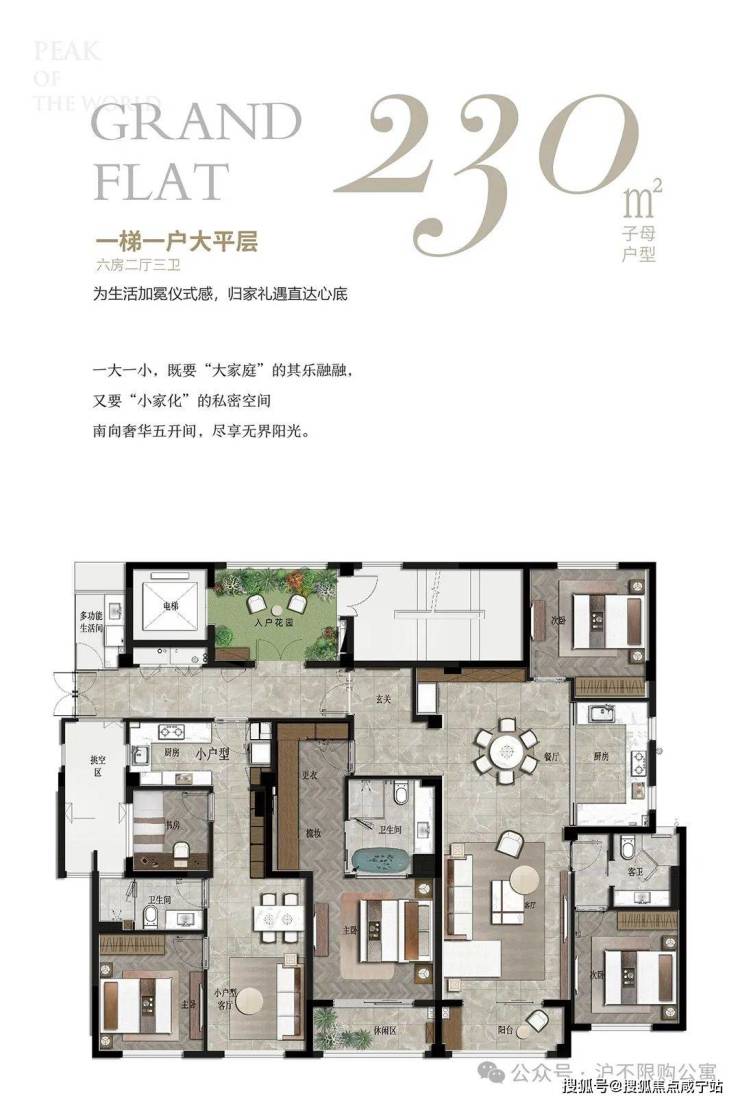 230㎡ 子母户型 三房二厅二卫/一房一厅一卫