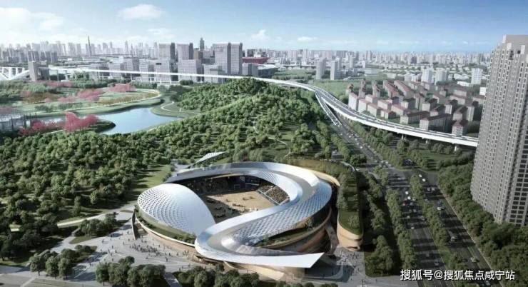 久事国际马术中心是国内首座符合国际顶级马术赛事标准的专业场馆。主体建筑包括竞赛场地、热身场、训练场和马厩等竞赛设施以及5000座的观众看台。山、水、谷的设计理念。目前已完成地上、地下结构、钢结构、升降灯架等重要工序。