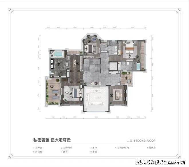 PRESIDENTIALSUITES奢华全套房:卧室配置更衣室、卫生间及阳台.主卧更显奢华,独立书房及步入式衣帽间诠释由内而外的儒雅气质,开阔露台留给诗和花的自由空间.