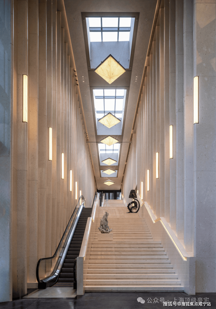 比如,艺术感与质感并存的车库,以及全石材地面铺装的车库大堂。