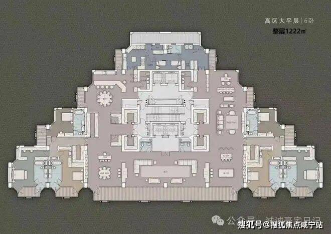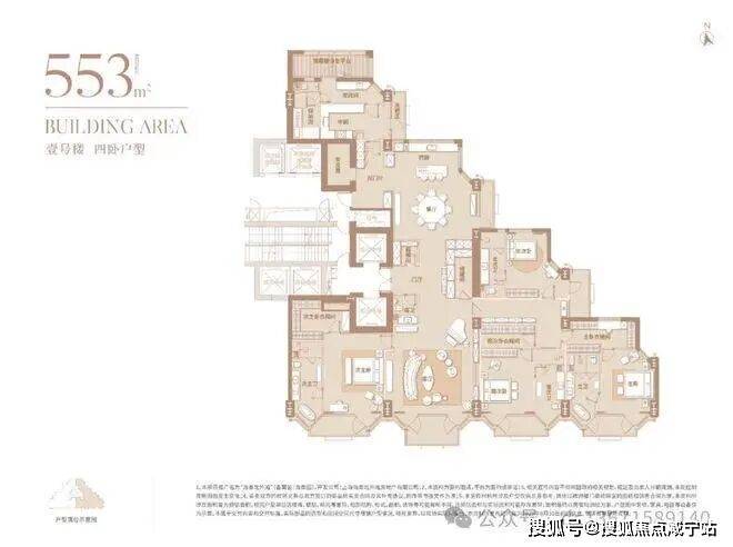 一号楼内的户型为建面约553-1222㎡
