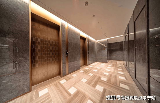 候梯厅以黑金配色为主调,奢华装修格调拉满,金属线条与黑色石材巧妙搭配,辅以精致灯饰,彰显高端质感与尊贵身份,归家仪式感十足。