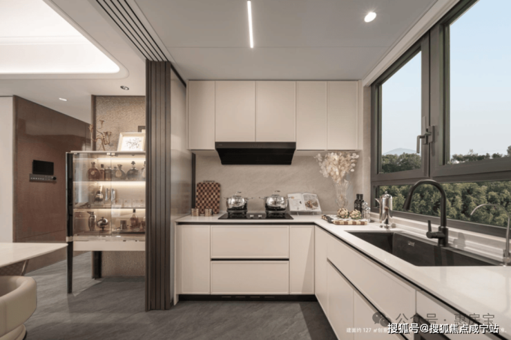 为此,招商·时代潮派|东屿设计了一面S墙,可以放下一个超大的双开门冰箱。同时把原本冰箱的空间都留给了厨房,让业主有更多的空间进行烹饪。说完户型,我们再来看一下项目的精装和收纳: