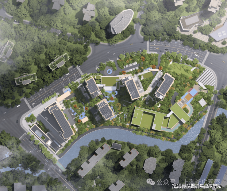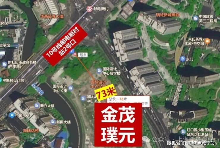 回过来看金茂·璞元,它与瑞虹新城融为一体共享配套,同时距离地铁站更近(就在10号线邮电新村站站口)通勤效率直接拉满,更有沙泾港天然河道与地块平行,顶豪标配的滨水而居氛围跃然纸上!