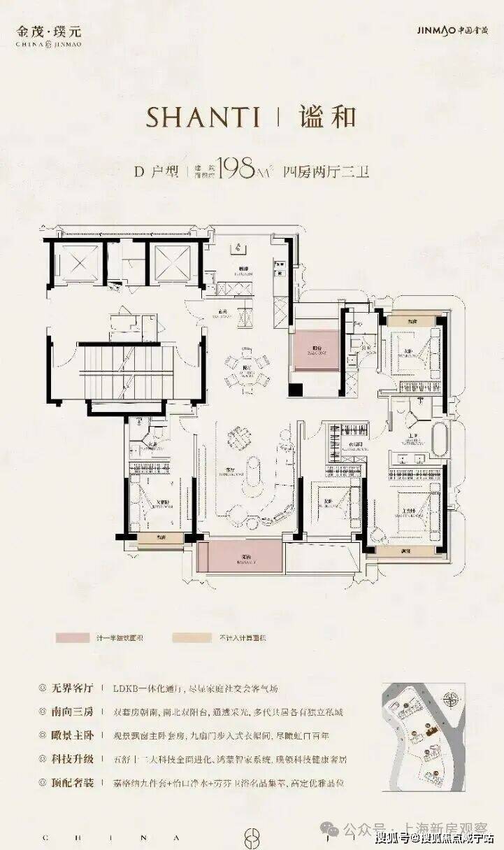 据悉,产品体系,金茂上海第一个TOP级「璞系」+「科技住宅」作品,最快4月底展厅,6月份样板间,7月底首开,9月份实景示范区(会所等)开放。