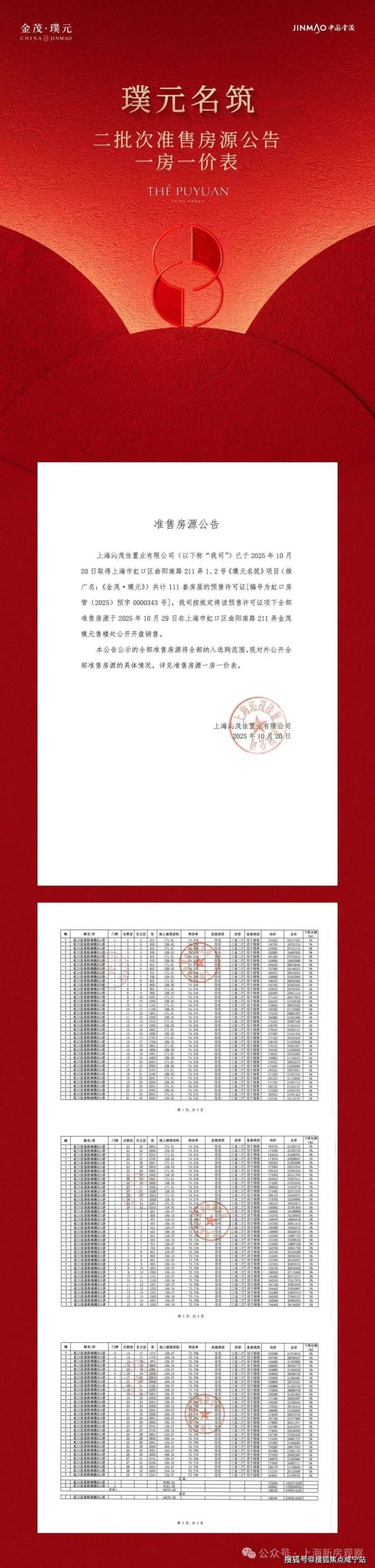最新消息!上海2025年首个地王“瑞虹地王”金茂+庆隆瑞虹项目正式定名「金茂·璞元售楼处电话:400-8800-703」首开售罄!三期建面约200㎡4房;均价16.81万/m²,总价2800-3670万!一梯一户,得房率82-85%,高隐私、空间感强;售楼处线上火热预约中!
