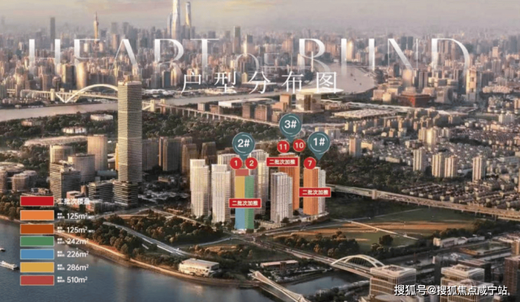 加推涉及3栋楼,建面约125-286㎡多个户型,其中位置最优质的2号楼绝对的滨江头排,拥有最优质的江景和城市天际线视野,24米以上即可拥有很高的看江概率,15F以上绝美江景视野